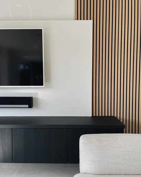 16. Big sound, big statement / การออกแบบโฮมเธียเตอร์ที่ทันสมัยพร้อมเสียงรอบทิศทางและกรุผนังอะคูสติกไม้ตกแต่ง