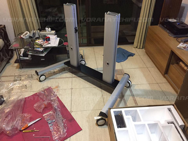 This ultra-large display TV cart with stylish, technical and functional design to provide solid presentation solution for most 55-98 inch LED, LCD TV