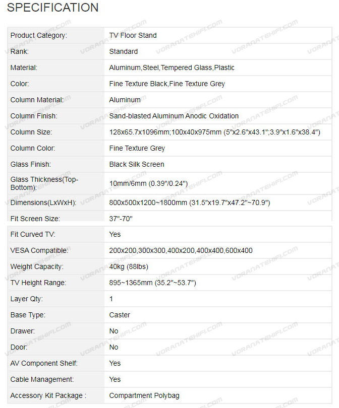 F8350G Contemporary Design ขาตั้งทีวี 37"-70" ปรับหมุนจอภาพแนวตั้ง-แนวนอน และปรับความสูงได้ 1.20-1.80 เมตร, วัสดุผลิตจากอลูมิเนียมชนิดพิเศษที่มีความแข็งแรงสูง และมีน้ำหนักเบา ผ่านกรรมวิธีเคลือบแบบ Sand-Blasted Aluminium Anodic Oxidation Powder Coating.