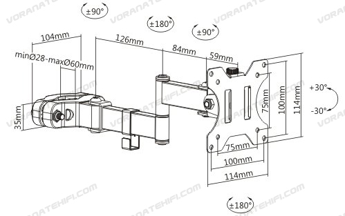 No Walls, Desks ! - Only a Pole Will Do. You don't necessarily need a wall or desk to mount a monitor. No.35-112 Pole Mount Monitor Arm, all you need is a pole! Mounting is "easy peasy"! These monitor arms integrate a clamp and adjustable monitor arm that mount quickly and easily to a 28~60mm(1.1"-2.4") diameter pole. They're the perfect mounting solution when conventional mounting isn't available. Features: