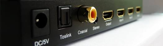 - ![]() - 4 x HDMI Audio/Video inputs with one front-panel input for convenient connection to portable devices - 1 x HDMI Audio/Video output - 1 x S/PDIF Optical (Toslink) audio output for 5.1ch.dts and Dolby Digital only* - 1 x Digital Coax audio output for 5.1ch.dts and Dolby Digital only* - 1 x Analog 3.5mm stereo audio output - Integrated audio converter for simultaneous digital and analog audio output on all audio output channels - Audio sample rate of 44.1 to 192 KHz - Supports uncompressed LPCM audio - Supports compressed DTS Digital, Dolby Digital, DTS-HD, and Dolby True HD audio - Supports 225 MHz/2.25 Gbps per channel (6.75 Gbps total) bandwidth - Supports 12-bit per channel (36-bit total) Deep Color - Full HDCP support