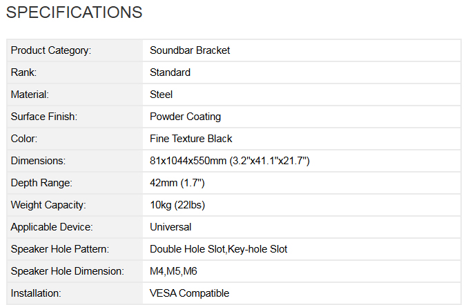 - รับน้ำหนักลำโพงซาวด์บาร์ได้ถึง 10 กก.