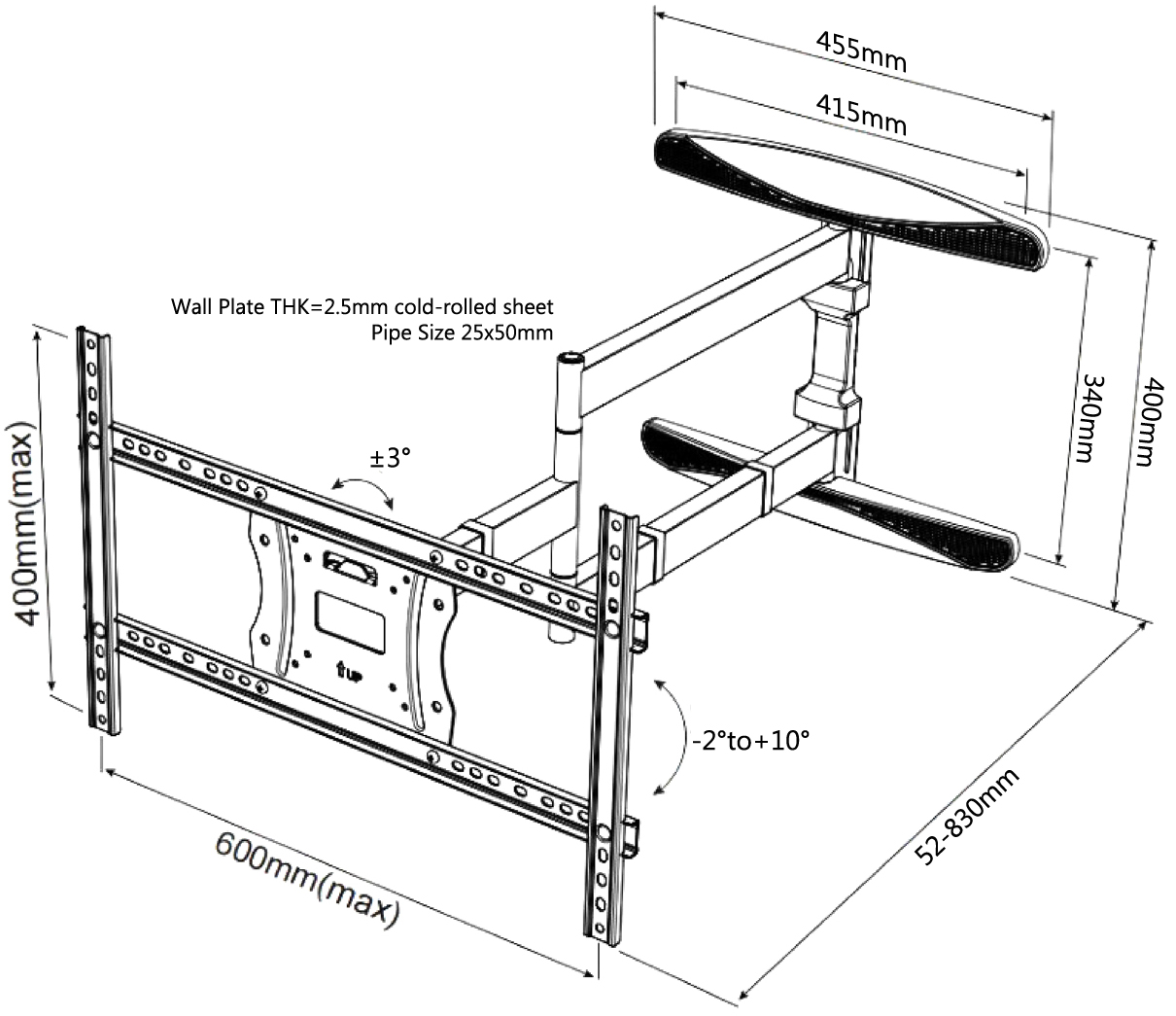 ![]() KS-4070EL Full-Motion TV mount fits most 40"-70″ LED TVs with Single Long-Arm Extension of 52-830 mm, It's able to turn 90° for 70″ LED TVs. This vertical slide wall mount is made of SPCC (Cold Rolled Steel) and the material is versatile, adjustable and most importantly, sturdy. The construction is finished with a black coat for a compatible and aesthetically appealing style.