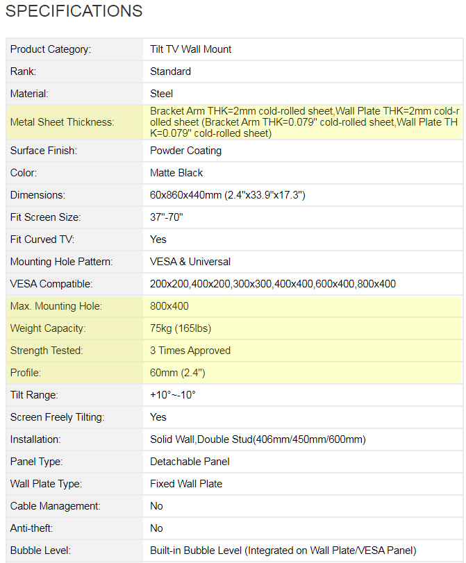 • ติดตั้งทีวีตั้งแต่ขนาด 37" ถึง 90" น้ำหนักไม่เกิน 75 กก.