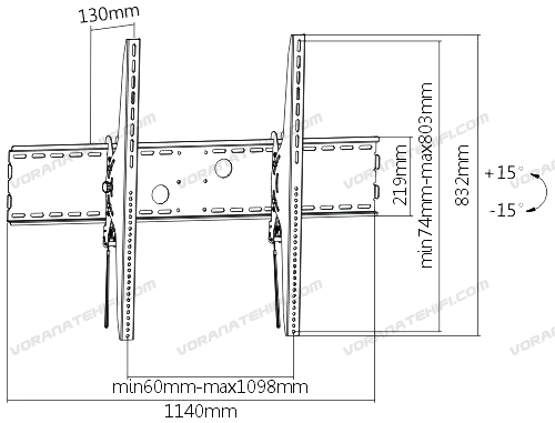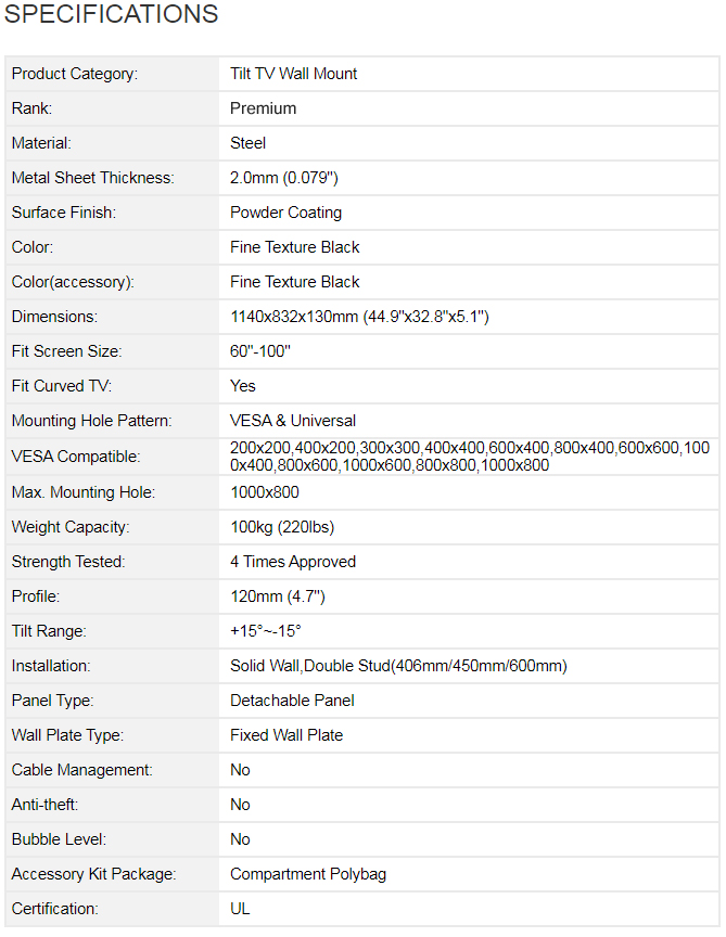 T1080MAX ขาแขวนทีวี X-Large Heavy-duty สำหรับ TCL 115" X955 Premium QD-Mini LED TVs แบบปรับก้ม-เงยได้โดยไม่ต้องใช้เครื่องมือ พร้อมด้วยระบบ "click-in spring lock" ล๊อคและปลดล๊อคชุดขาแขวน สำหรับการประกอบทีวีหรือยกออก, Max VESA 1000x800 mm., Weight Capacity 100 kg., ระยะห่างจากผนัง 130 มม.