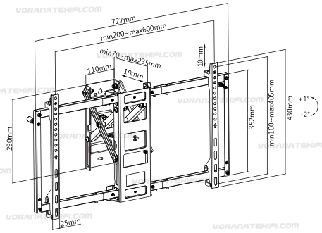 in-wall 3770 series ขาแขวนทีวี 37"-70" แบบ pop-out สำหรับงานติดตั้งแบบ "ฝังจอภาพลงในเฟอร์นิเจอร์บิวท์อิน", Max VESA 600 x 400 mm., ระยะห่างจากผนัง 70-235 mm., และรองรับน้ำหนักได้ถึง 50 Kg.