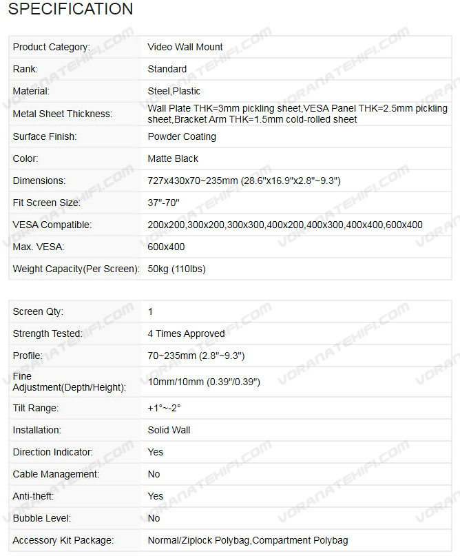 -    Precise Display Alignment: for seamless digital signage(height, depth, tilt adjustment)